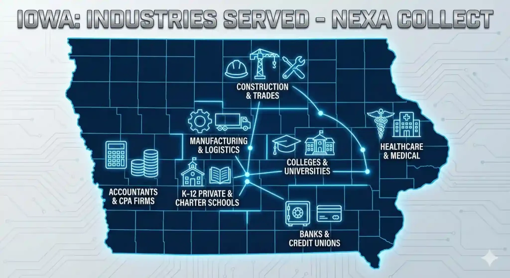 The 10-Year Window: Iowa offers one of the longest statutes of limitations in the U.S. (10 years for written contracts), allowing Nexa to recover “zombie debt” that other agencies have given up on.