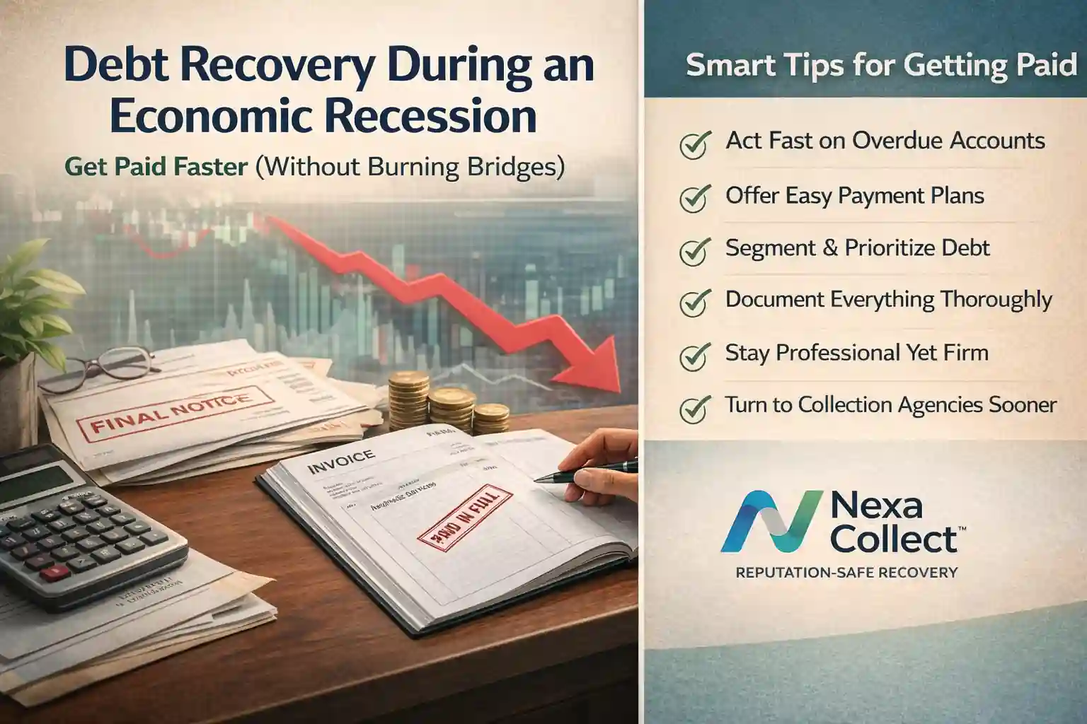 That’s why recession debt recovery isn’t just “collect harder.” It’s about collecting smarter, faster, and more professionally—before your invoices become last on the debtor’s priority list.